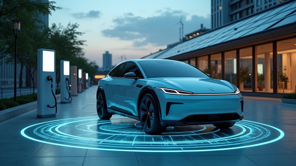 Electric vehicle charging is undergoing revolutionary changes through wireless charging, ultra-fast 350kW stations, and AI-driven smart systems. Road-embedded charging coils and bidirectional capabilities will transform vehicles into mobile power units, while renewable energy integration enhances grid stability. The projected growth of 85 million EVs by 2025 is driving expansion of charging networks with improved interoperability. These innovations, combined with solid-state battery technology, signal a future where charging becomes seamless and efficient. The complete transformation of EV charging infrastructure reveals even more promising developments ahead.